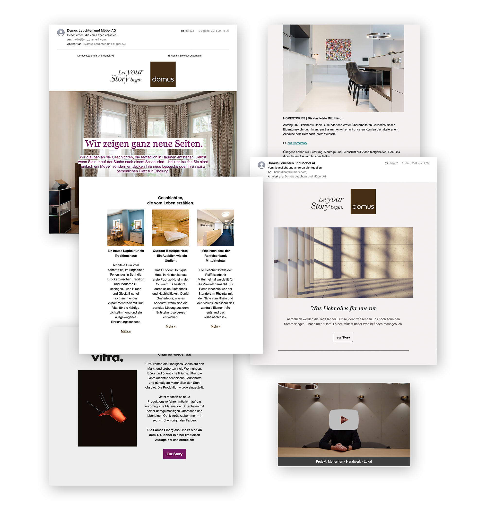 Das Leben schreibt die besten Geschichten, und es schreibt sie oft in den Wohnzimmern, Schlafzimmern, Küchen und an den Arbeitsplätzen dieser Welt. Damit diese «Bühnen» die richtige Ausstattung erhalten, ist DOMUS seit über 40 Jahren ein führender Raumausstatter für Privat- und Geschäftskunden in der Ostschweiz. Mit dem Redesign des Logos und der Entwicklung des Kampagnenclaims «Let your story begin» wurde für DOMUS ein Stück Geschichte geschrieben.