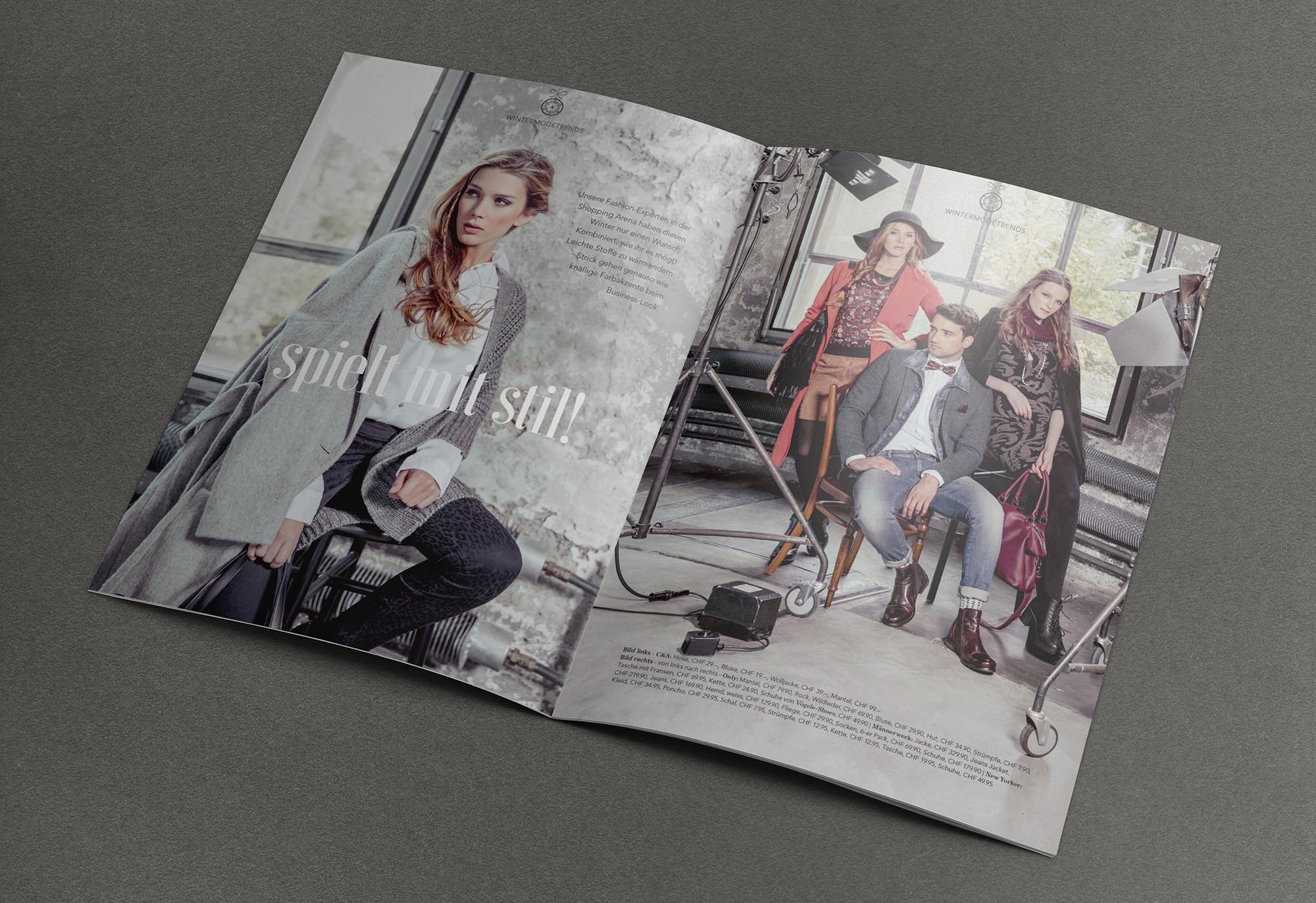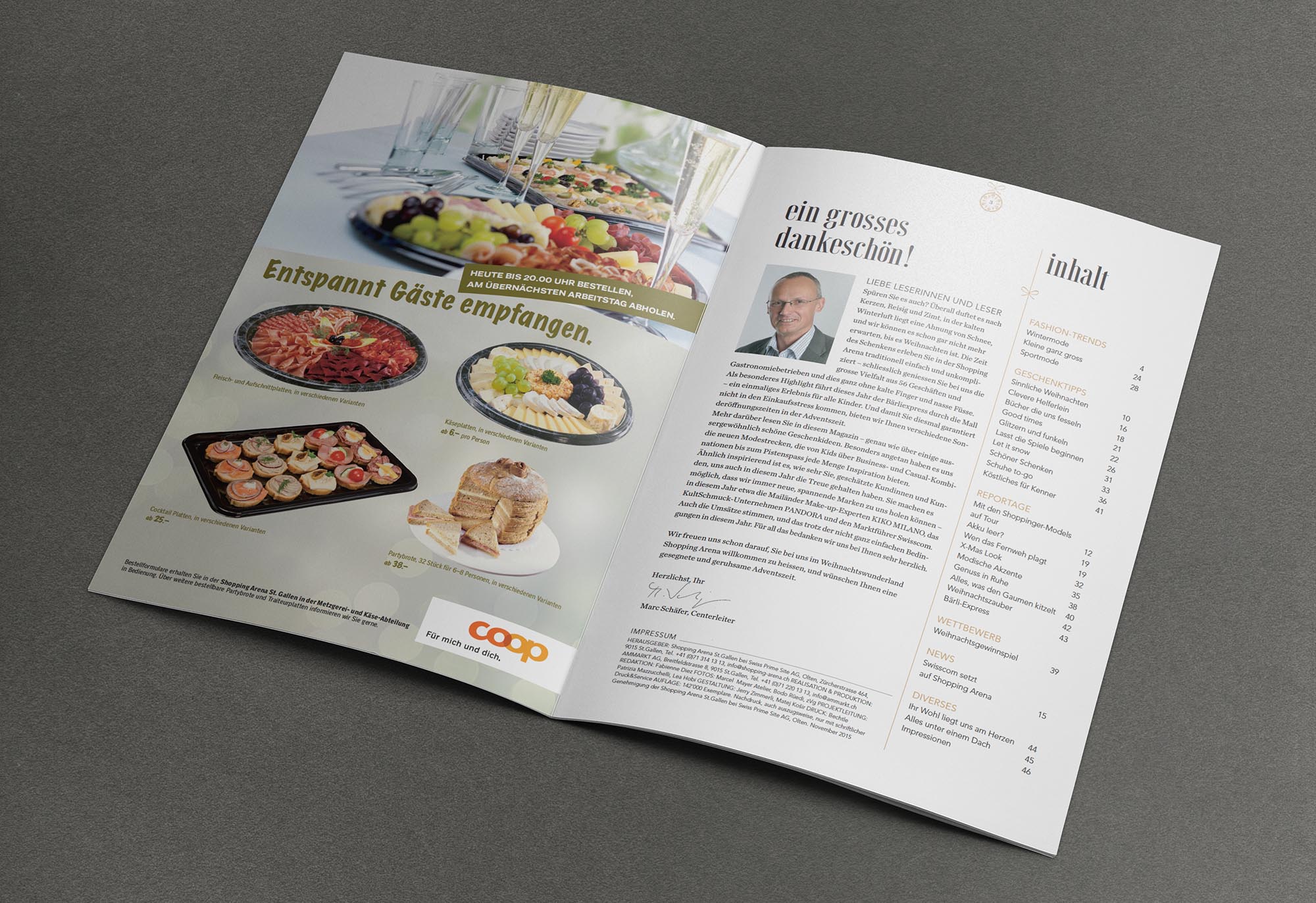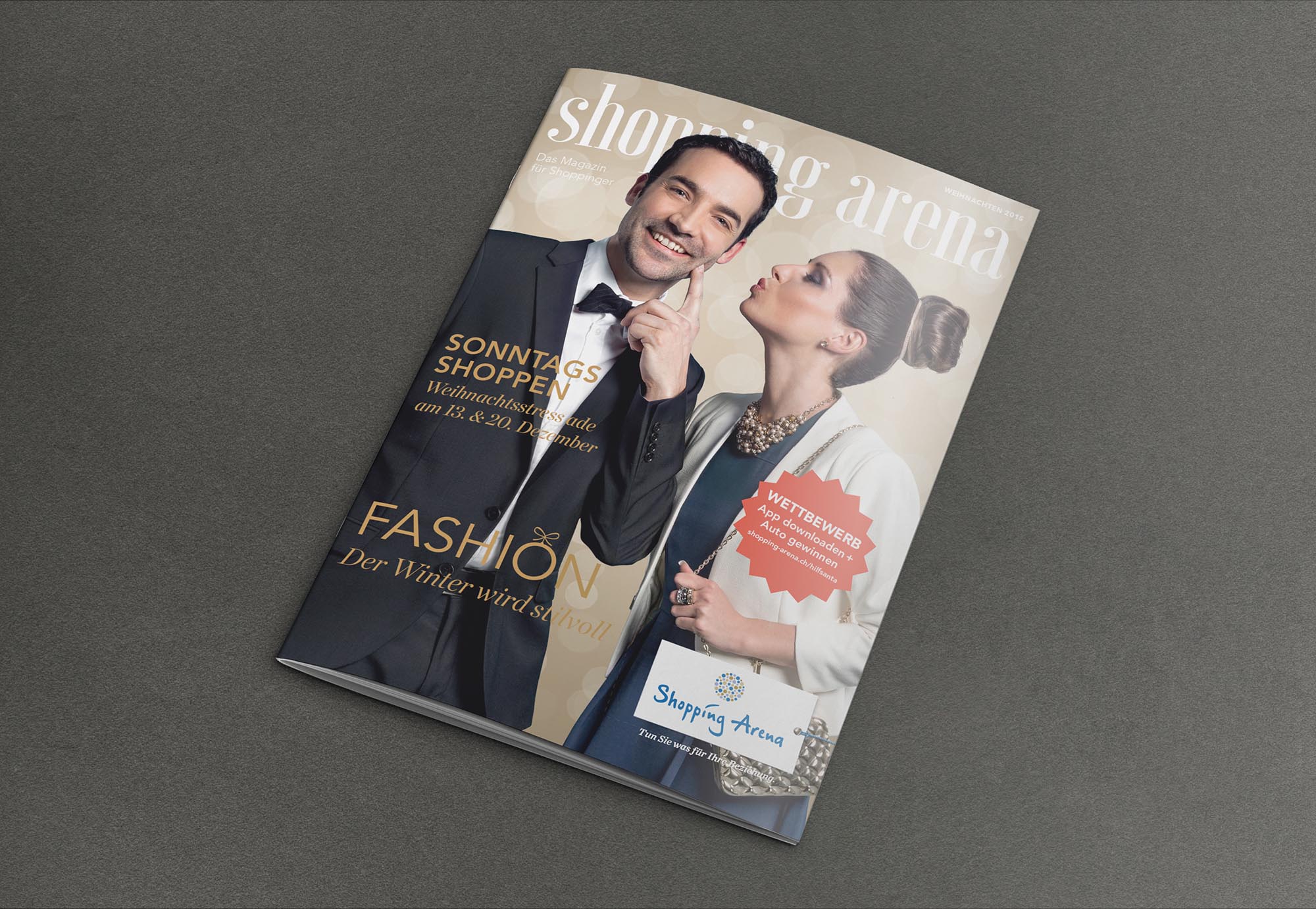 Für die Shopping Arena - das grösste Einkaufszentrum der Ostschweiz mit 59 Geschäften und vier Millionen Besuchern pro Jahr - ist die Vorweihnachtszeit die wichtigste Zeit des Jahres. Um dem Verkauf in dieser Zeit den richtigen Glanz zu verleihen, galt es, das beliebte Weihnachtsmagazin der Shopping Arena zu modernisieren und neu zu gestalten (eine Aufgabe, die einen schnell in Festtagsstimmung versetzt). Inspiriert von der weihnachtlichen Vorfreude wurden nicht nur das Editorial Design des Magazins überarbeitet, sondern auch die dazugehörigen Modefotoshootings geplant und durchgeführt.