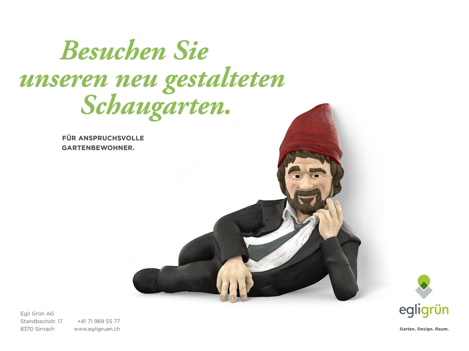 Für Egli Grün wurde unter anderem ein Markenbotschafter entwickelt, der sich auf unkonventionelle Weise bei der relevanten Zielgruppe Gehör verschafft und die Positionierungsbotschaften in den Köpfen der Menschen verankert.