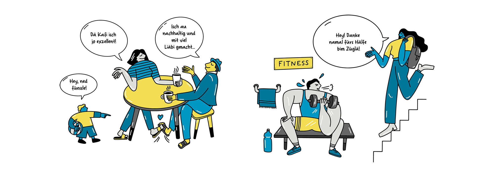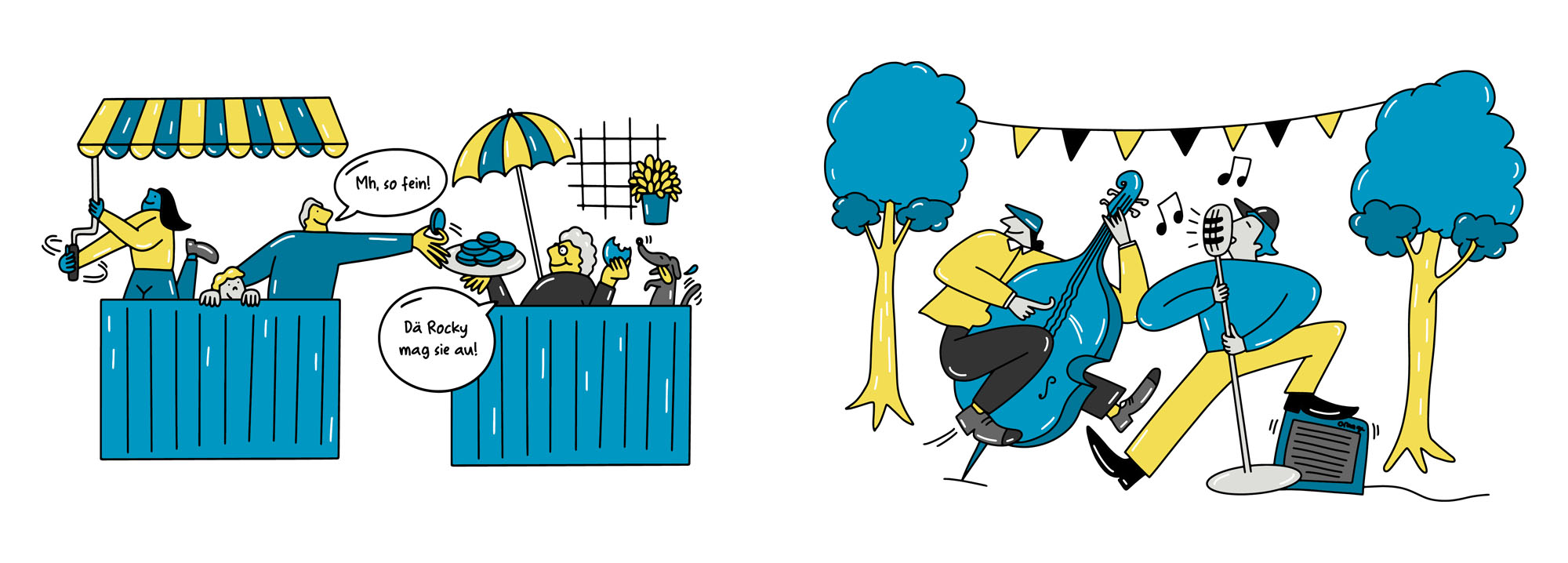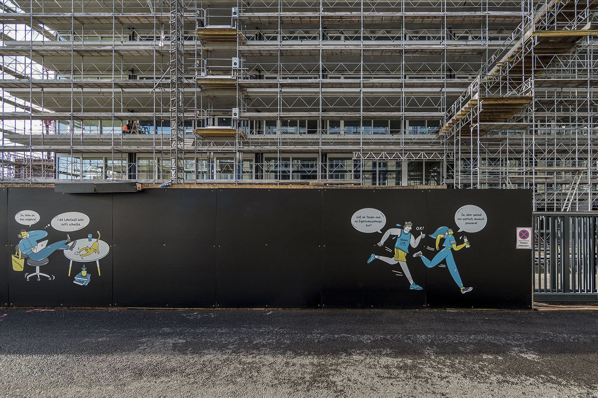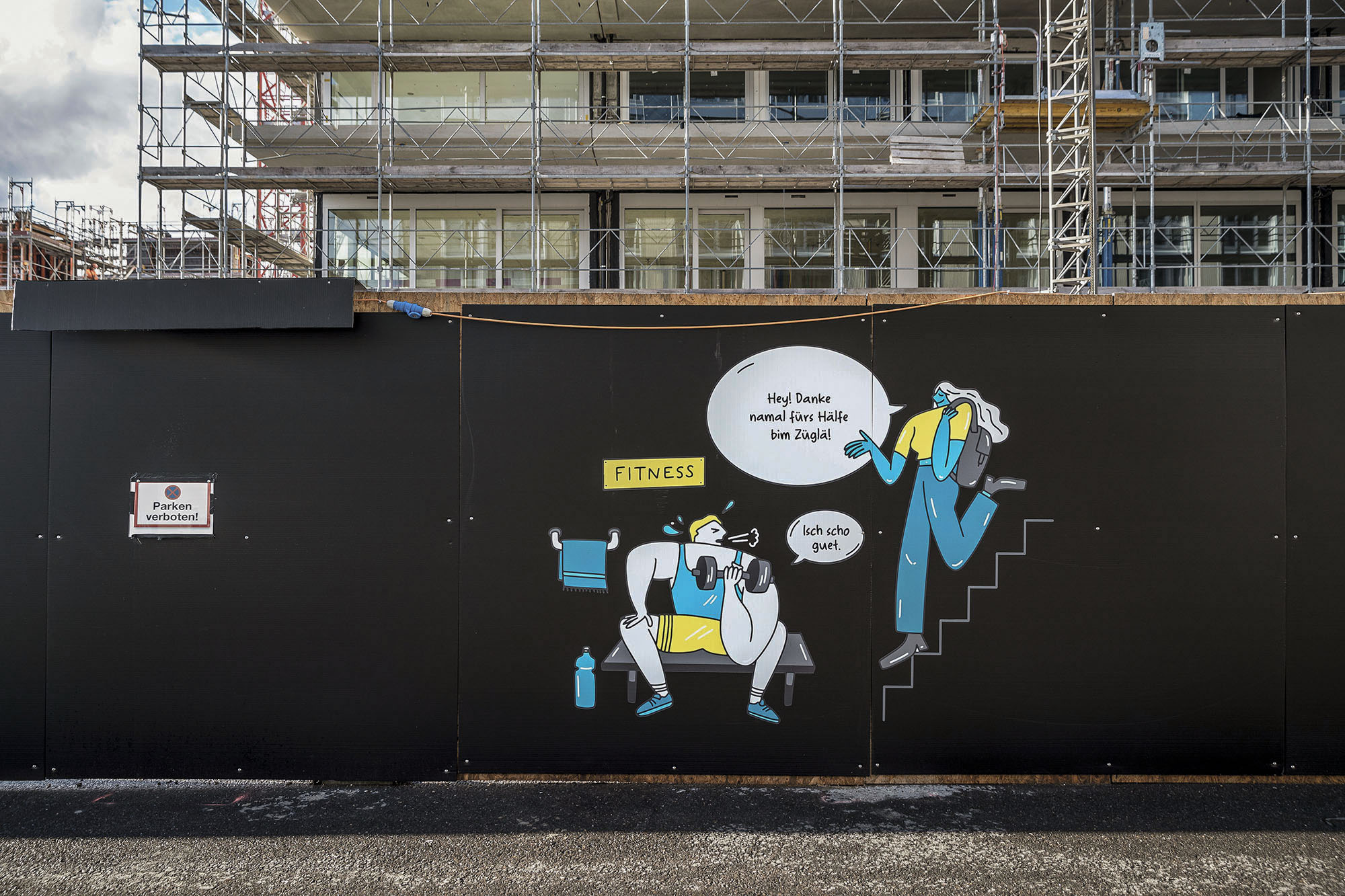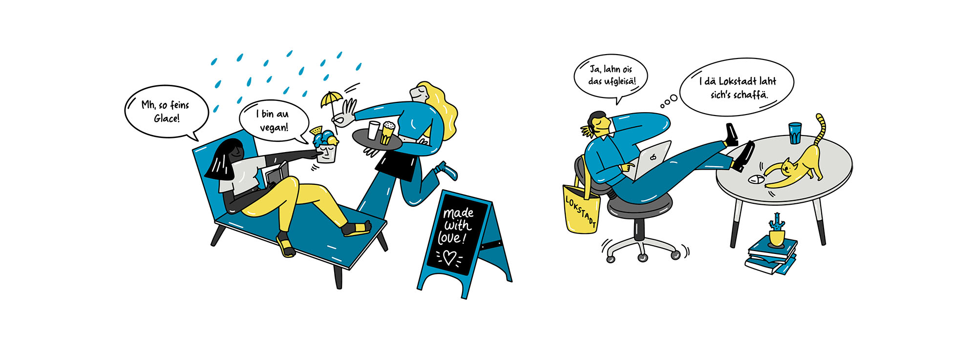 Im Zentrum von Winterthur entsteht ein neues Quartier zum Leben und Arbeiten: Die Lokstadt. Um darauf aufmerksam zu machen, wurde u.a. die Konzeption und Realisierung von Gebäudewänden in Auftrag gegeben. Mit den Themen Kaffee, Dialog, Nachhaltigkeit, Büro/Gewerbe, Events, Hotels, etc. soll das Leben in der Lokstadt gezeigt und Neugierde auf das, was noch kommt, geweckt werden. Die Idee ist, die Lebendigkeit in Illustrationen zu zeigen, die Katrin von Niederhäusern sorgfältig und mit viel Humor und Einfallsreichtum dargestellt hat. Die Illustrationen fanden auch digital und im Lokstadt-Magazin Verwendung.