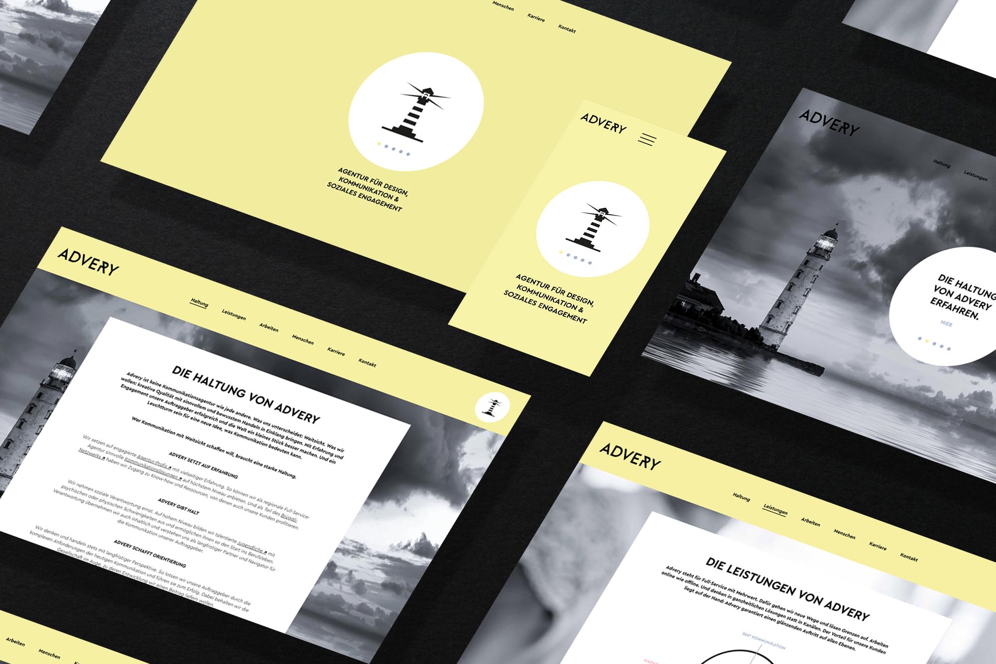 Advery ist keine Kommunikationsagentur wie jede andere. Was sie auszeichnet: Weitsicht. Was sie will: Qualität und Kreativität mit sinnvollem und bewusstem Handeln in Einklang bringen. Ihre Erfahrung und ihr Engagement einsetzen, um ihre Kunden erfolgreich und die Welt ein bisschen besser zu machen. Und ein Leuchtturm zu sein für eine neue Idee davon, was Kommunikation bedeuten kann.