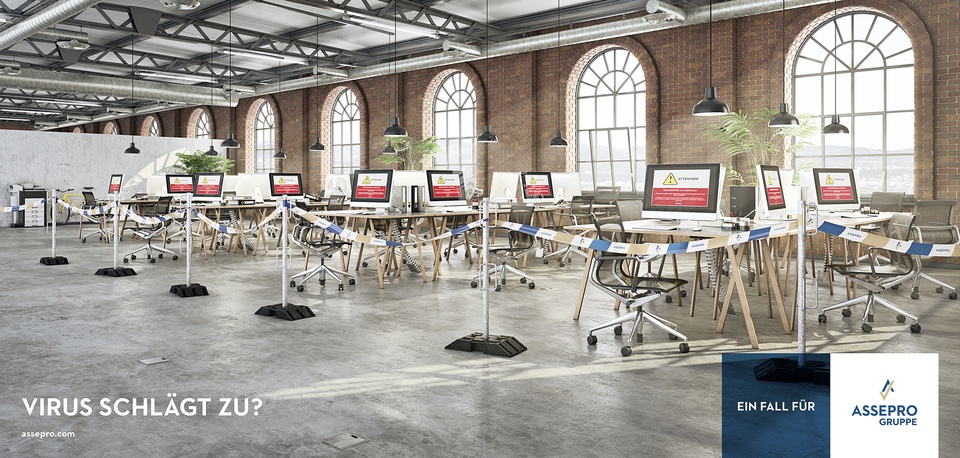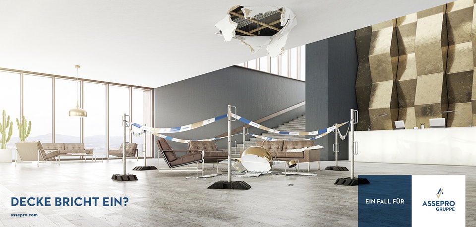Um dies wirkungsvoll in Szene zu setzen, wurden Visuals produziert, welche potenzielle Risiken wie zum Beispiel Transportschäden auf dramatische Art und Weise und in True-Crime-Manier zeigen. Das Absperrband steckt da jeweils den Schadensbereich ab: Zu diesem Zweck arbeitet Assepro die entsprechende Versicherungslösung aus und kümmert sich um alles.